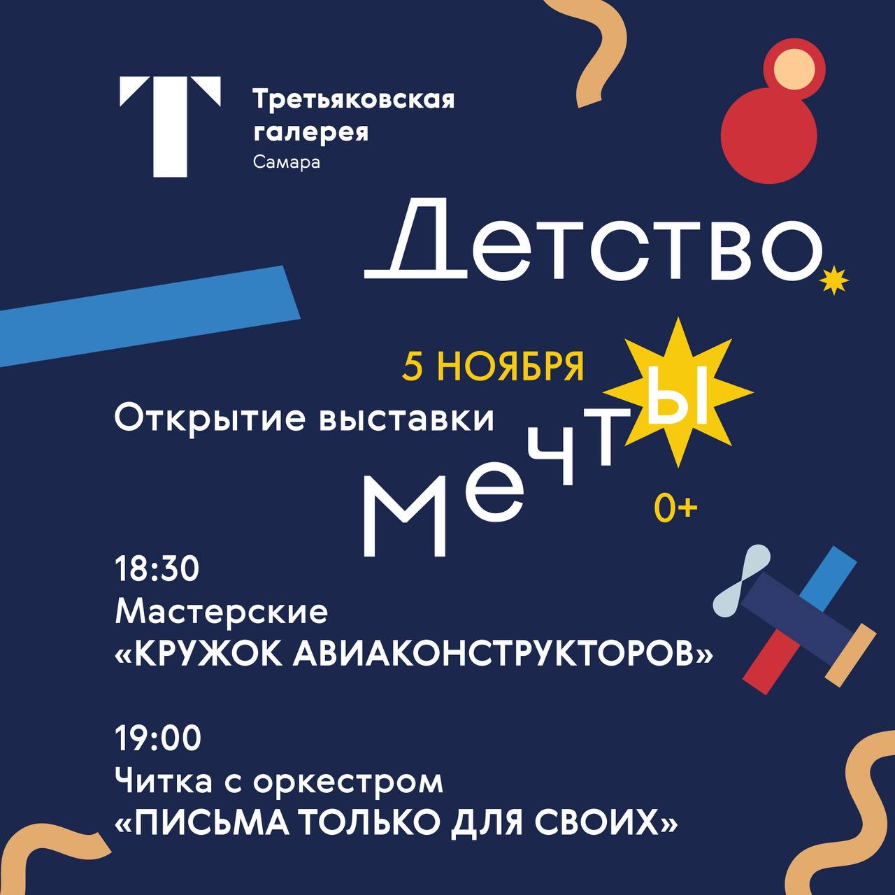 Друзья, приглашаем посетить новую выставку «Детство. Мечты» (0+) в день открытия. 5 ноября мы подготовили для вас интересную программу: