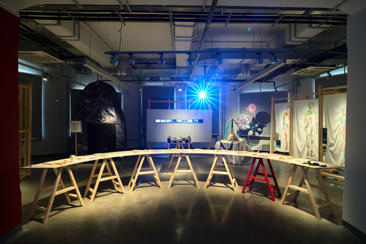 Здесь представлены работы участников Программы, артефакты и следы их пребывания в арт-резиденции.